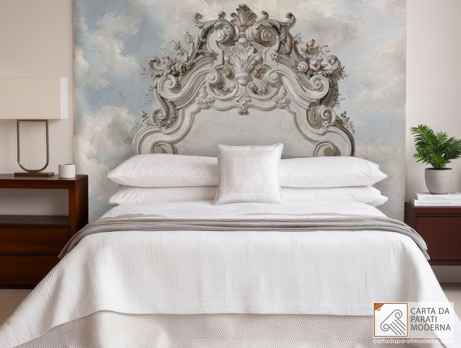 Cielo Barocco sulla Parete: la Carta da Parati Artistica che trasforma la Camera da Letto in un Capolavoro